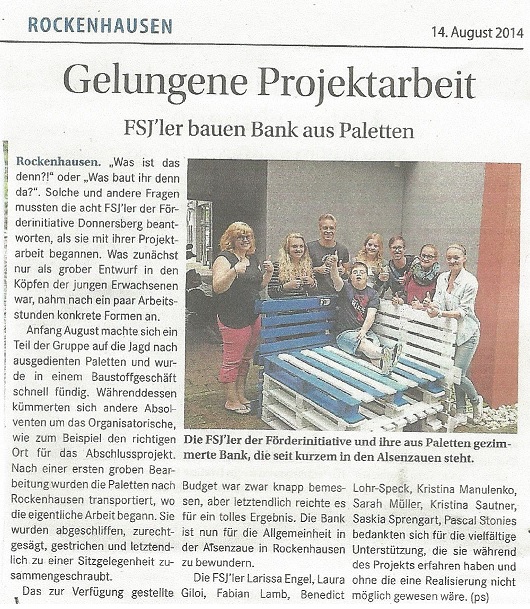 Ein Jahr lang freiwillige Arbeit und Engagement verdienen Anerkennung. Deshalb erhält jeder Teilnehmer nach Abschluss seiner Einsatzzeit ein Zeugnis. Diese schriftliche Bestätigung ist auch ein Kompetenznachweis für erworbene Schlüsselqualifikationen. Alle die ein FSJ absolvieren, erhalten vollen Versicherungsschutz für den Krankheits- und Pflegefall ebenso wie Kindergeld und Kinderfreibeträge, sofern das Gesamteinkommen die geltenden Beträge nicht übersteigt. Die Zeit des FSJ wird für die Altersvorsorge angerechnet. Die Freiwilligen sind rechtlich ähnlich gestellt wie Auszubildende. Sie erhalten außerdem während des Einsatzes ein Taschengeld, Verpflegungkosten und einen Fahrtkostenzuschuß. Einsatzbereiche: Alten-/Seniorenheime, Krankenhäuser/ Kliniken, Ganztagsschulen, Kinder- und Jugendarbeit, Behindertenarbeit Nähere Informationen unter Tel.: 06352-7537581 Projektarbeit 2023-2024: Film; Doku Projektarbeit FSJ-Gruppe 2022-2023 Projektarbeit der FSJ´-Gruppe 2020/21 Projektwoche in Bildern 2018/2019 Projektdokumentation der FSJ-Gruppe 17/18 Projektarbeit der FSJ-Gruppe 2016/17 Projektarbeit der FSJ-Gruppe 2015/16 Auszüge aus der Projektwoche der FSJ´ler 2014/15 Die Projektarbeit der FSJ-Gruppe 2013/14
